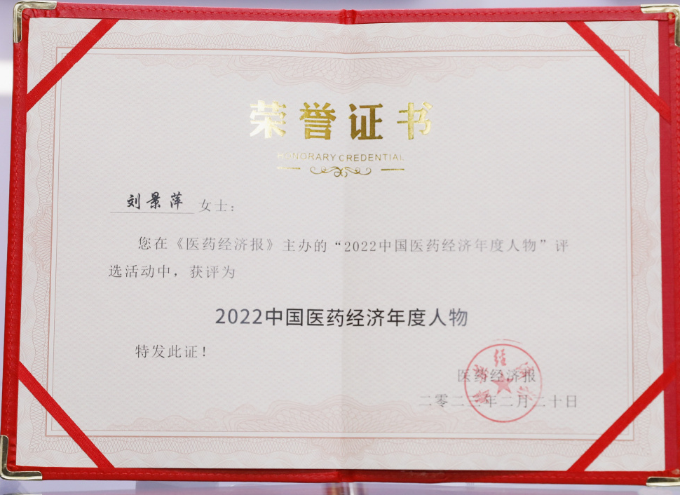 彩虹多多药业集团董事长刘景萍当选“2022中国医药经济年度人物”