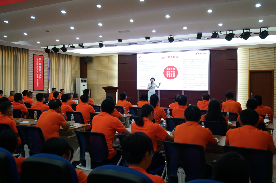 在党课的最后,刘景萍书记对公司全体党员和管理干部在思想和行动上提出了“转变思想、团结一致、分工明确、协作高效”的十六字工作要求,并从新形势、新挑战、新任务的角度对彩虹多多药业集团下半年的工作提出了三个方面的要求:坚持学在深处,在理论思想上培根铸魂;坚持谋在新处,在深化变革上攻坚克难;坚持干在实处,大兴调研之风,在推动发展上担当作为。